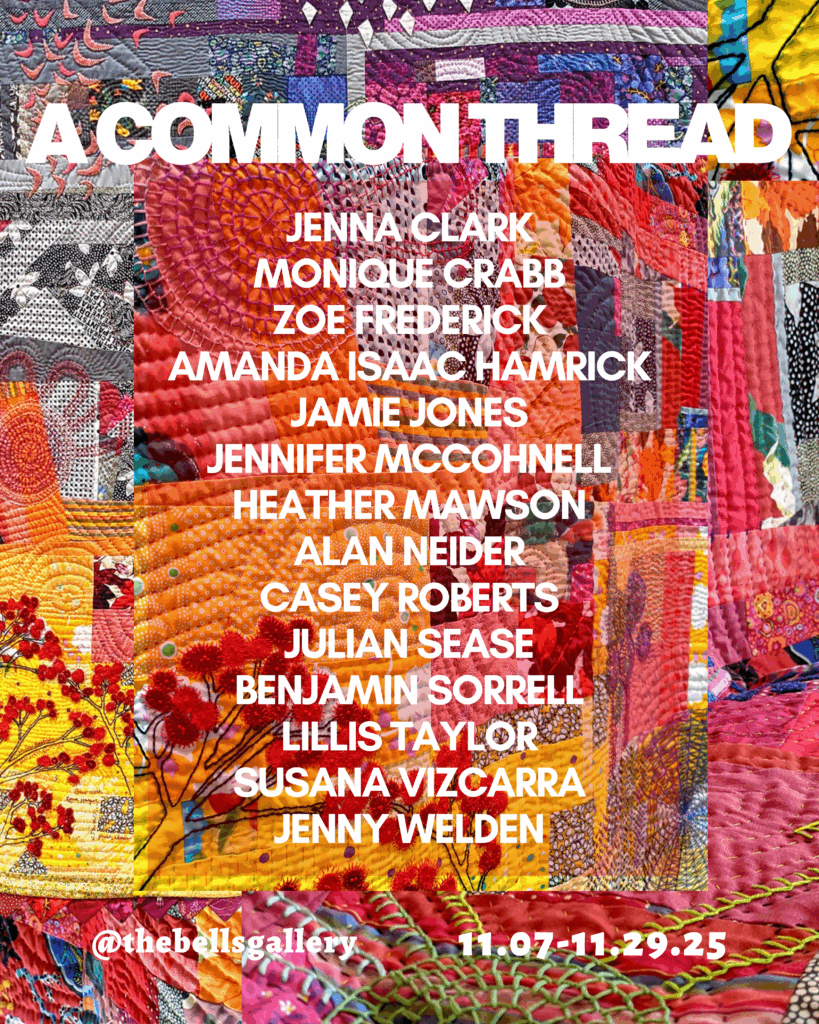A Common Thread is a group exhibition of contemporary quilts that surveys both the enduring legacy and the contemporary relevance of textile-based practices, bringing together fourteen artists from across seven states: Alabama, Maryland, Connecticut, Michigan, Colorado, New York, and Texas. The exhibition showcases a broad spectrum of work: from traditional pieced quilts rooted in regional and familial traditions to conceptual works that share social histories, identity, labor, and storytelling through fiber.